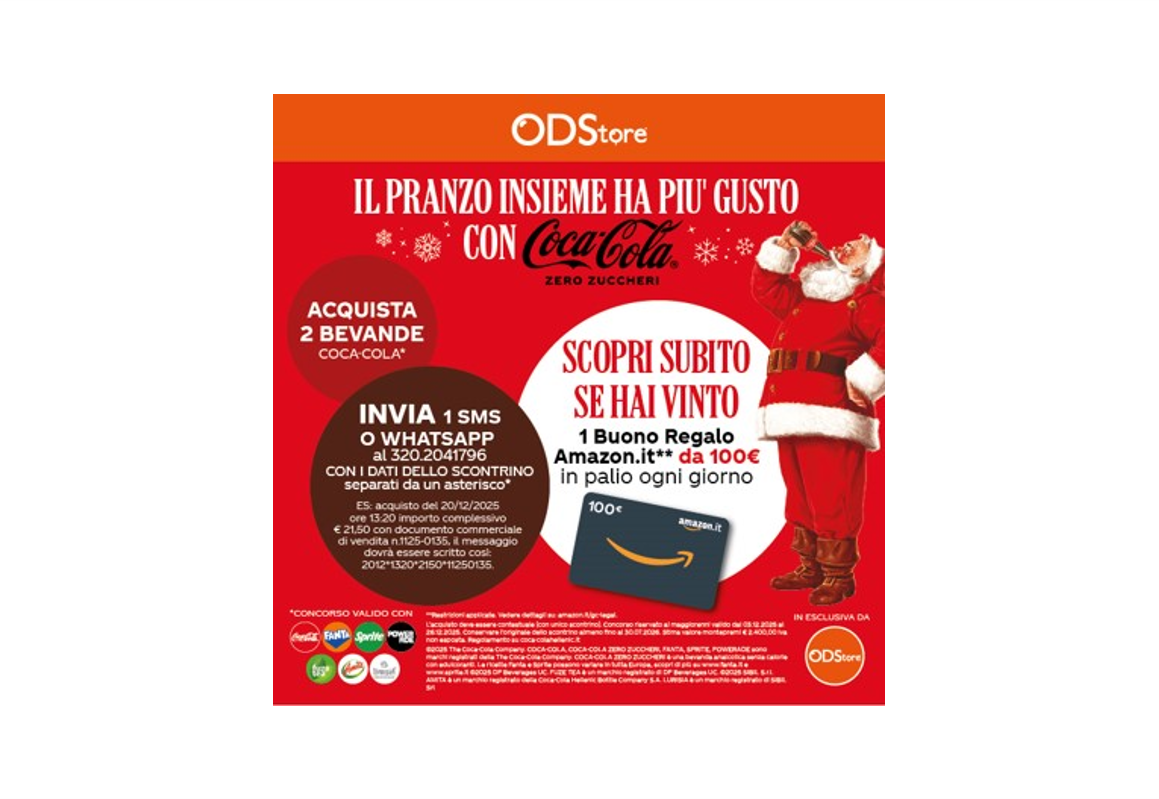 Possono partecipare al concorso tutti i maggiorenni residenti o domiciliati in Italia o nella Repubblica di San Marino, che dal 3 al 26 dicembre 2025, presso i punti vendita con insegna “ODStore”, acquisteranno contestualmente (con unico documento commerciale di vendita/scontrino) n. 2 prodotti (anche misti) a scelta tra Coca-Cola Original Taste, Coca-Cola Zero Zuccheri, Fanta, Sprite, fuzetea, Powerade, Lurisia e Amita, in qualunque gusto e formato disponibile.