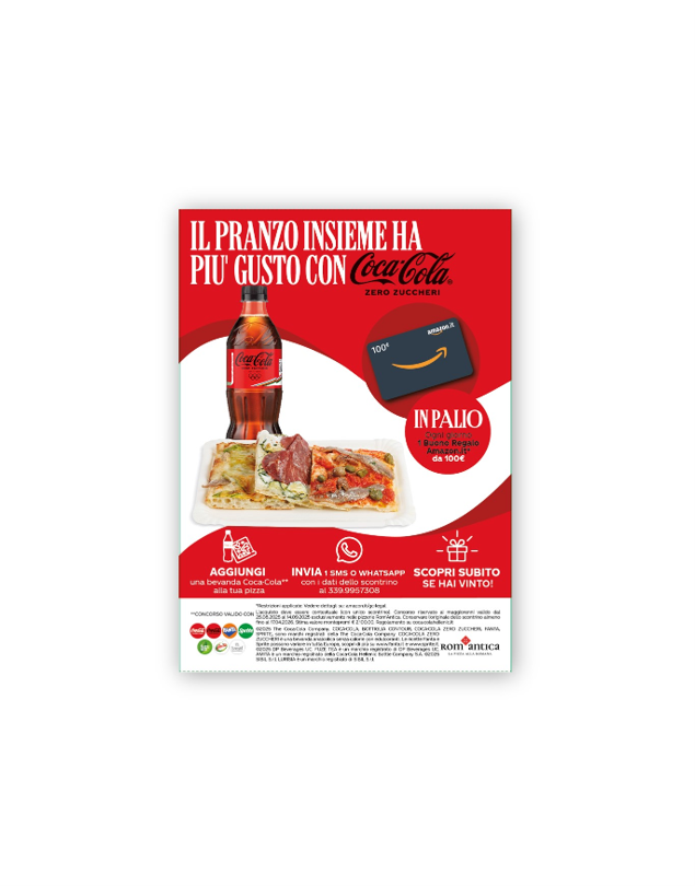 Possono partecipare al concorso tutti i maggiorenni residenti o domiciliati in Italia o nella Repubblica di San Marino, che dal 25 agosto 2025 al 14 settembre 2025, presso le Pizzerie ad insegna “Rom’Antica”, acquisteranno un Combo Menù composto da una pizza a scelta + una bibita a scelta tra Coca-Cola Original Taste, Coca-Cola Zero Zuccheri, Fanta, Sprite, fuzetea, Lurisia e Amita, in qualunque gusto e formato disponibile.